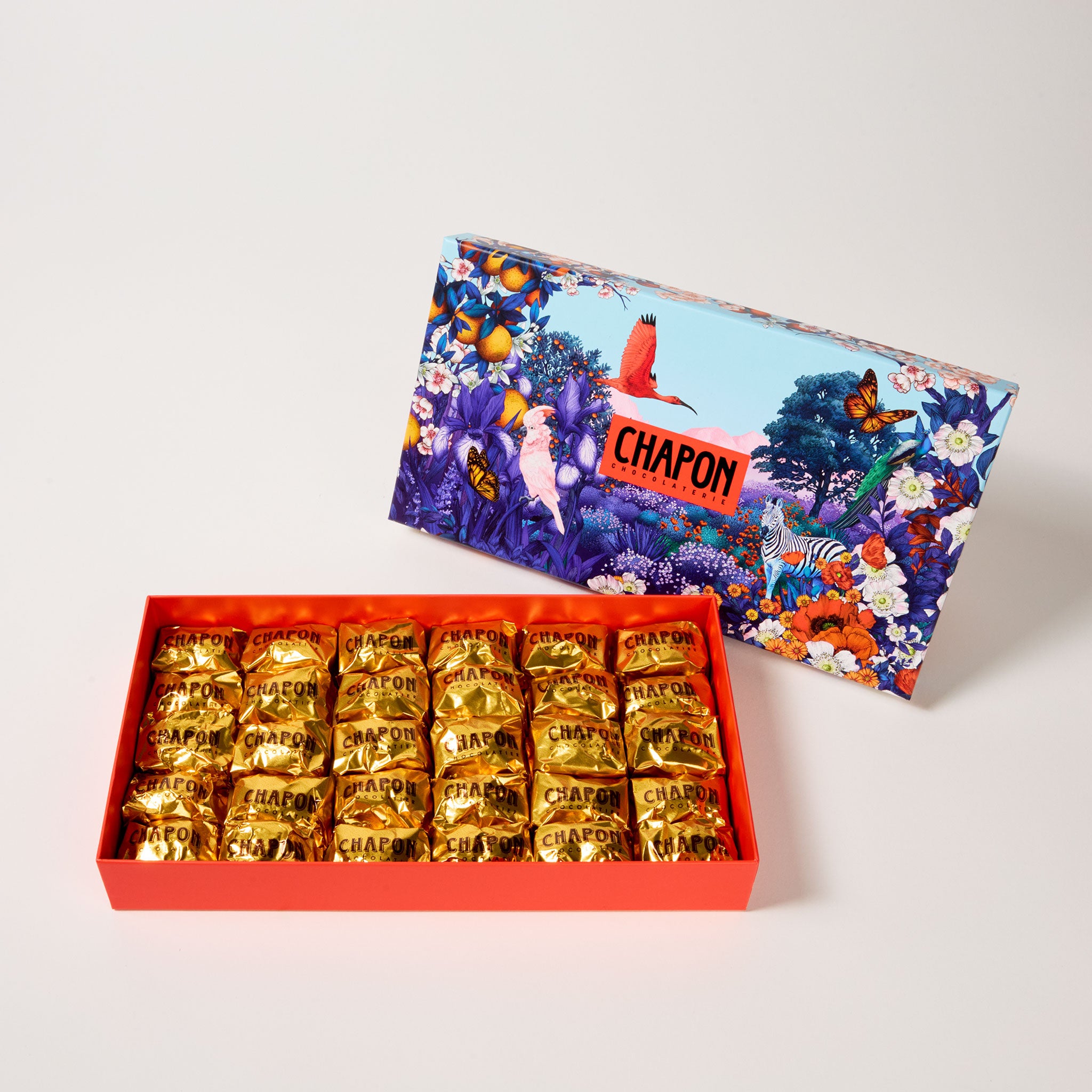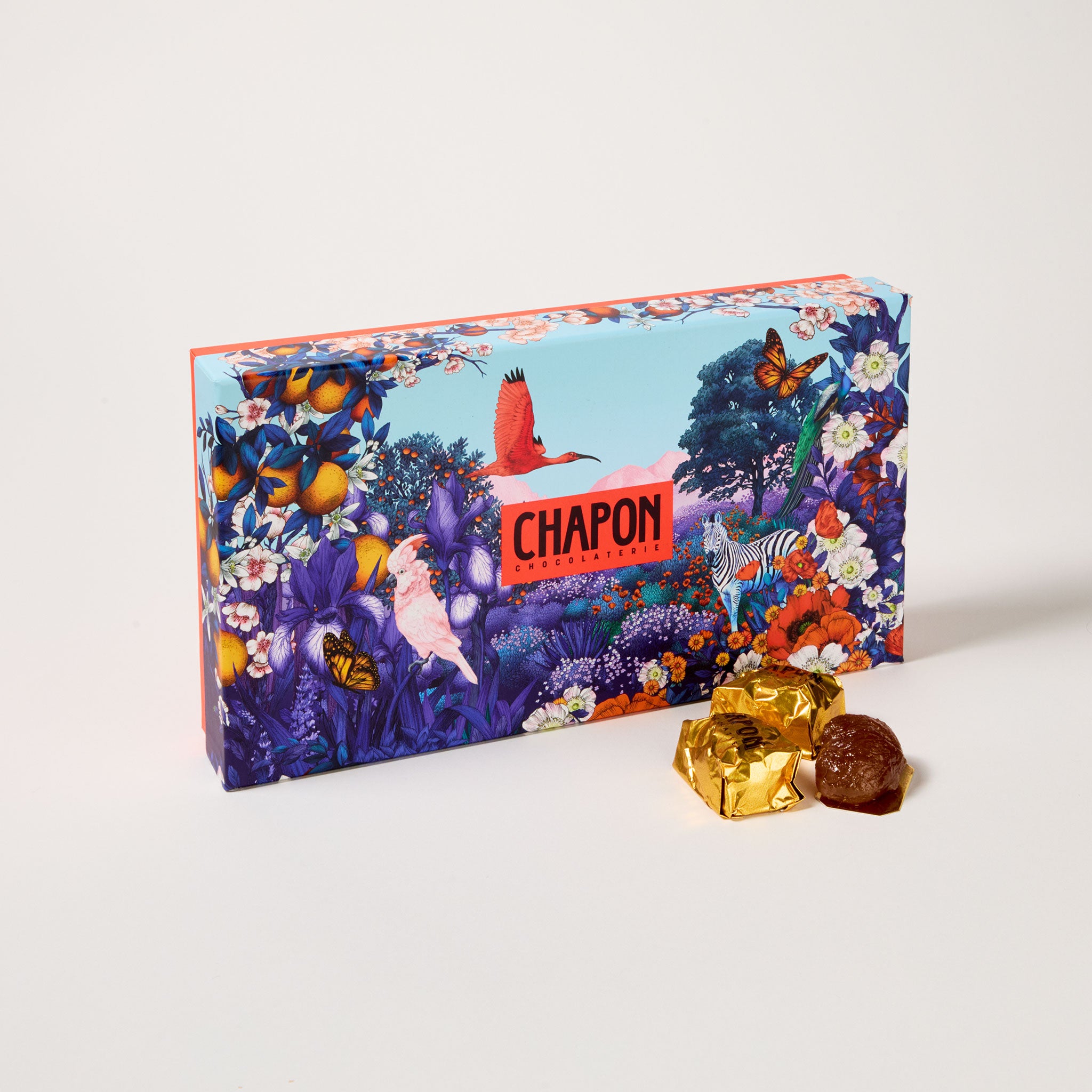 En collaboration avec l'illustratrice Frédérique Vernillet, la chocolaterie Chapon imagine une collection de coffrets qui nous transporte dans un jardin merveilleux, célébrant la faune et la flore des terroirs dans lesquels la Maison source ses cacaos.
