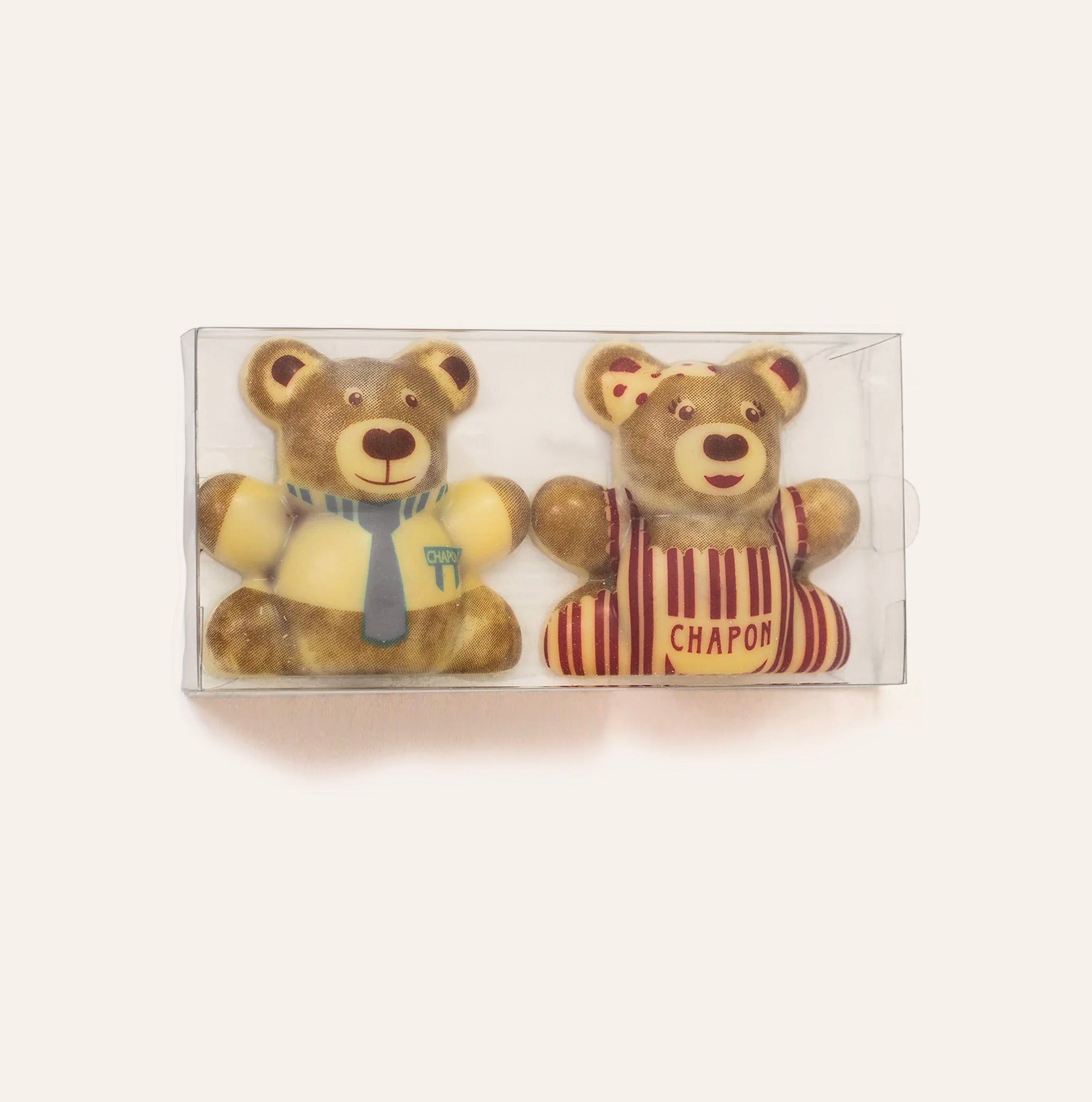 D’humeur câline, nos deux oursons Teddy vous ouvrent grand les bras. Une douce étreinte praliné amande-noisette, enrobée de chocolat blanc, vous attend.