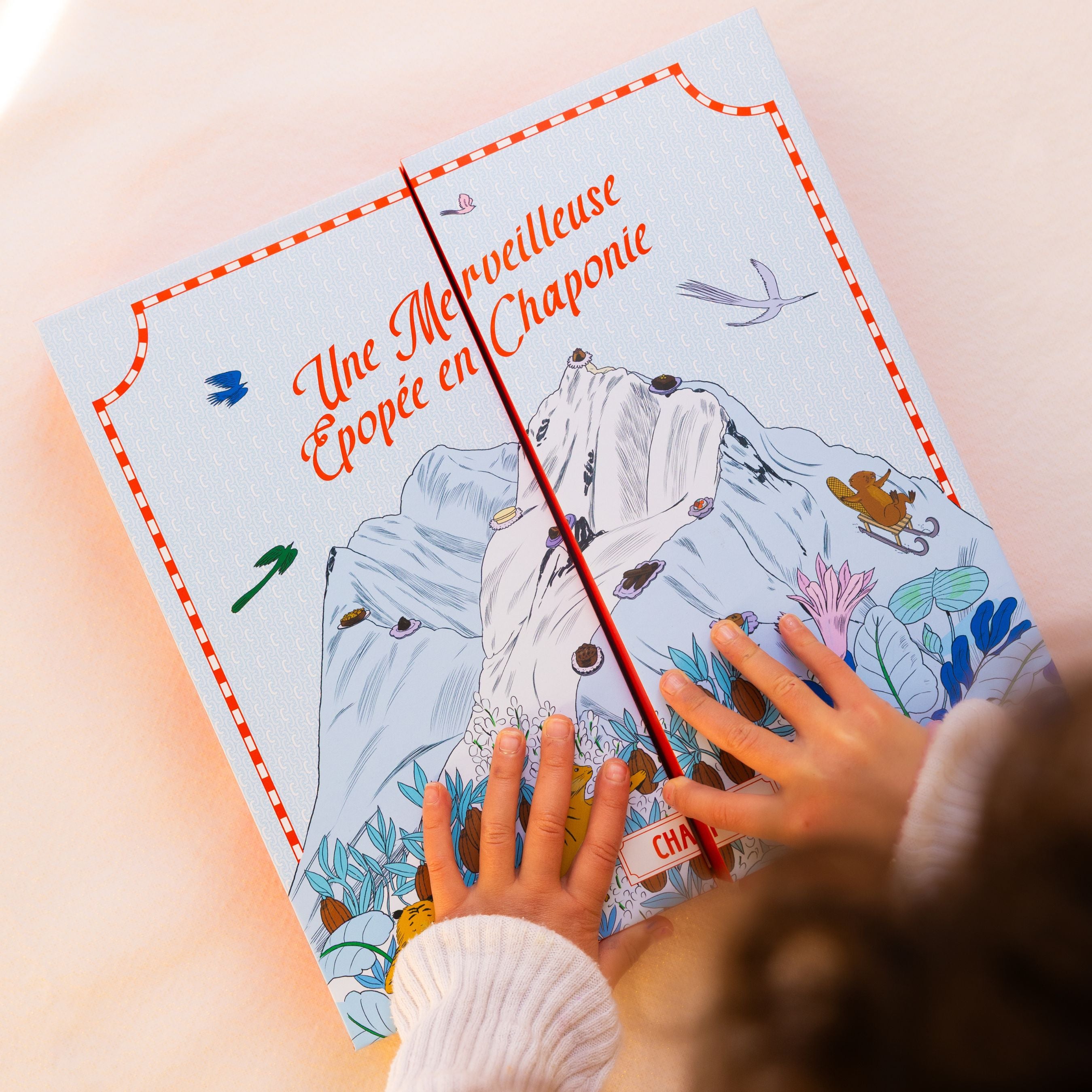 Le calendrier de l’Avent se transforme en une carte géante du monde merveilleux de Chapon. De la forêt enchantée, des cabosses aux montagnes sucrées de praliné, guidés par des animaux malicieux les explorateurs, découvriront chaque jour, un monde d’aventures, mais aussi de surprises et gourmandises.