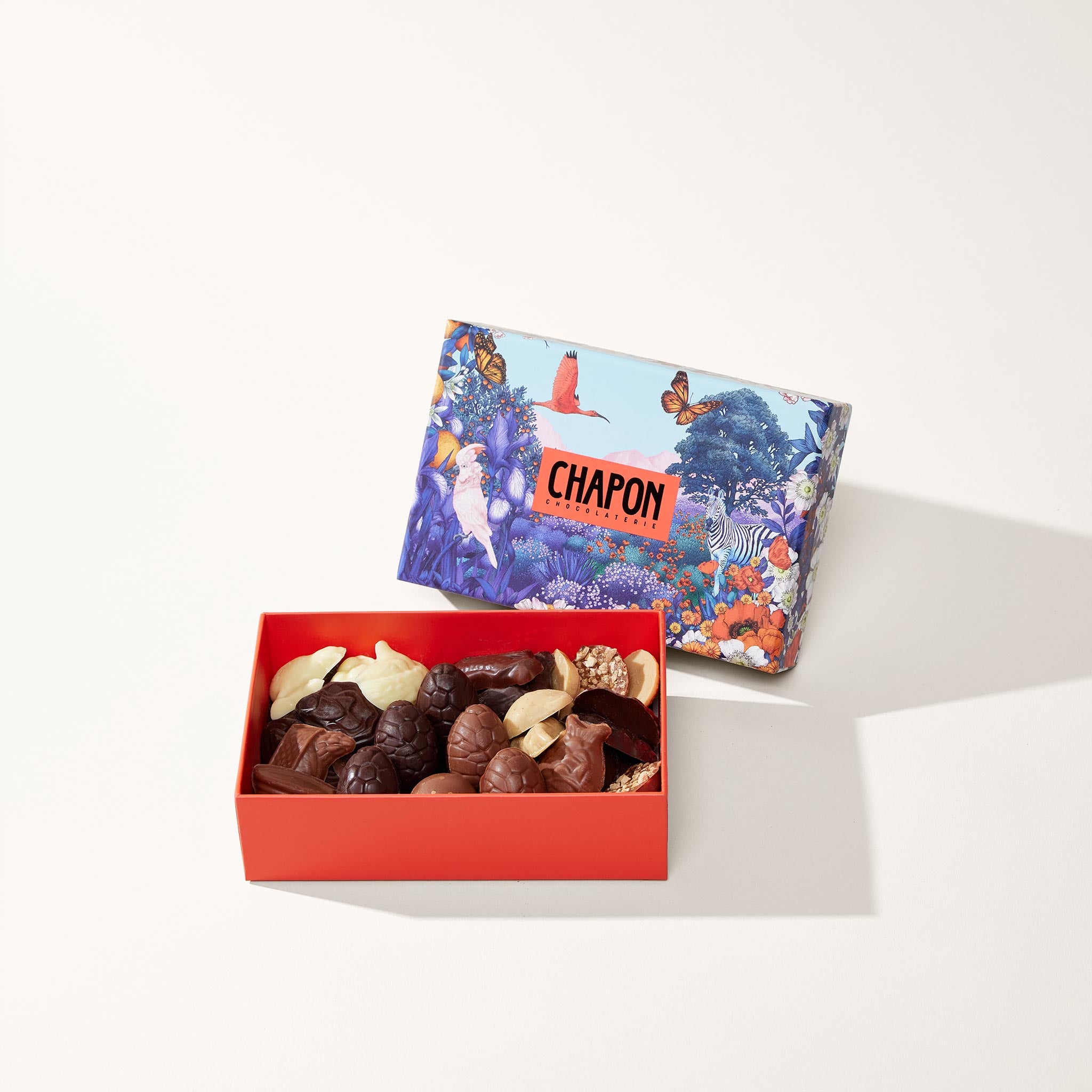 Découvrez dans ce coffret les incontournables fritures de Pâques, revisitées par Chapon avec gourmandise. Des bouchées tout chocolat, élaborées à partir d’un cacao rare de Madagascar soigneusement torréfié et conché par nos artisans, ou des pralinés aux recettes surprenantes et sophistiquées, telles que lait-pistache, noir-pécan ou lait-yuzu.